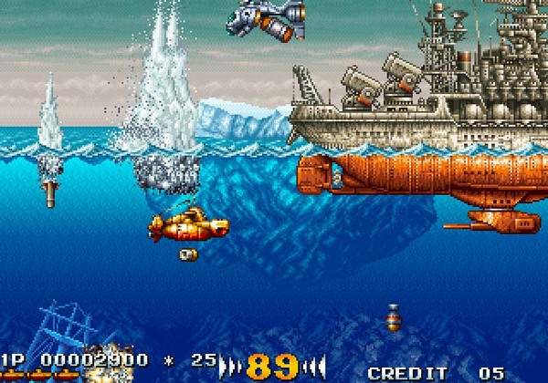 Управлять придётся жёлтой подводной лодкой! Если играть вдвоём, то будет ещё и серая. В распоряжении каждой имеются бесконечные торпеды (первая кнопка ведения огня) и летящие вертикально вверх ракеты, плюс глубинные бомбы (вторая кнопка ведения огня). В процессе разбирательства с вражескими силами можно поймать бонус, заменяющий либо торпеды, либо ракеты. Кстати, чтобы сбить воздушные цели, нужно обязательно всплыть на поверхность. Видимо, чтобы жизнь мёдом не казалась.