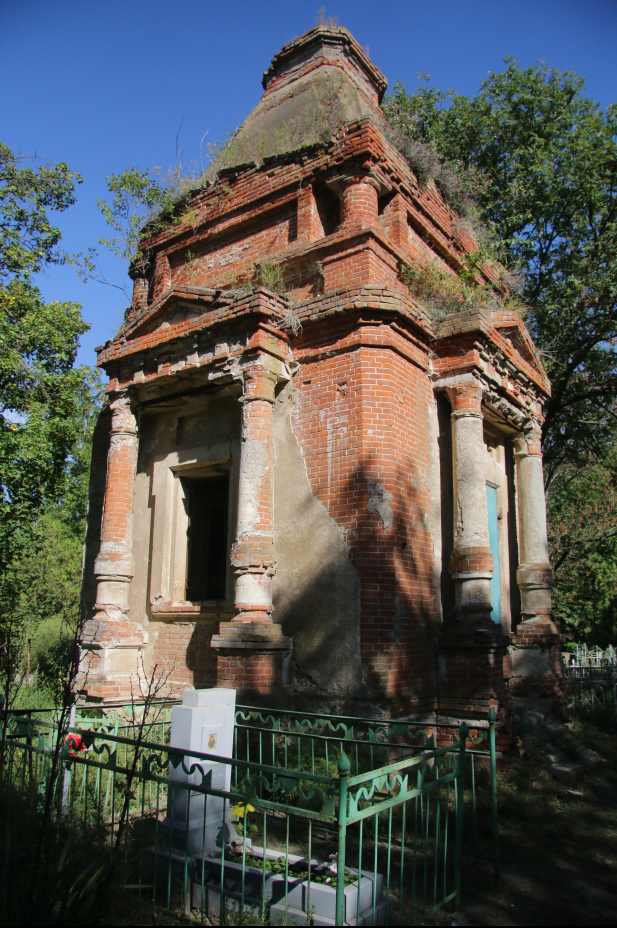 Самый большой (наземная часть) из уцелевших склепов на старом кладбище находится на центральной аллее напротив усыпальницы Ф. Д. Котопули.