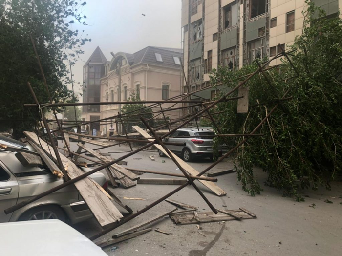 Астрахань накрыла пылевая буря и ураганный ветер. Пострадал как минимум один человек — на 18-летнего парня с многоэтажки упала часть балкона и кирпичи, у него травмы. Также мощный ветер сломал опору ЛЭП.