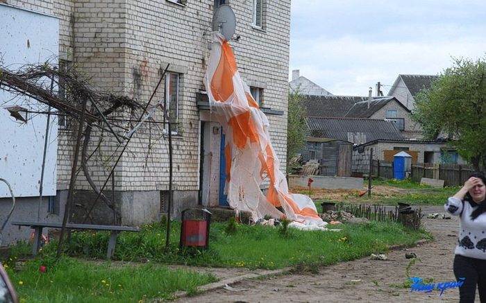 Лётчики погибли, потому что до последнего пытались отвести самолёт от жилой застройки. Они катапультировались в самый последний момент на критически низкой высоте. Это подтверждают повисший на одном из домов парашют и пятна крови (?) на стене.