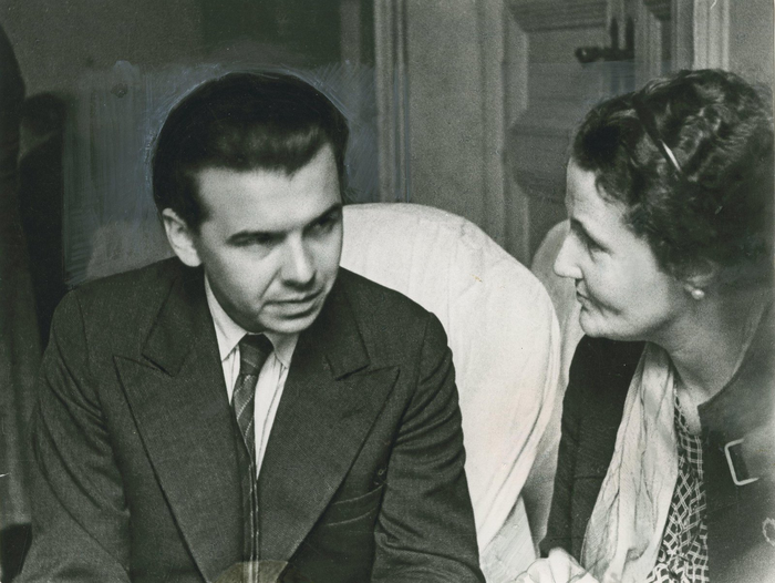1934. Писатель Леонид Леонов (слева) беседует с английской писательницей на Первом Всесоюзном съезде советских писателей