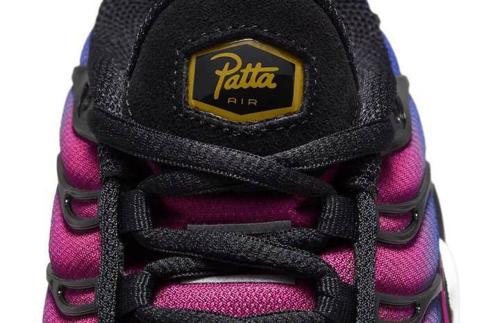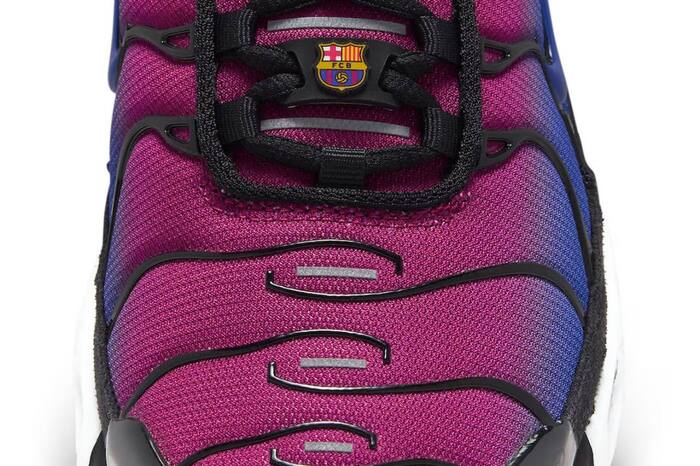 Nike и Patta снова воссоединились, на этот раз отдавая дань уважения футбольному клубу «Барселона» новейшей расцветкой классических кроссовок Nike Air Max Plus. Обувь выполнена в цветовой гамме футбольного клуба «Барселона» в ярких тонах фуксии, глубокого королевского синего, черного и белого цветов. Верх обуви выполнен в типичном сетчатом исполнении, в котором фиолетовый и синий цвета, вдохновленные цветами футбольного клуба, сочетаются друг с другом. Герб Barca изображен на шнуровке на передней части стопы, в то время как эмблема Patta видна на язычке и скрытом брызговике на носке. На боковой поверхности средней части стопы видны два свуша синего и фиолетового цветов.