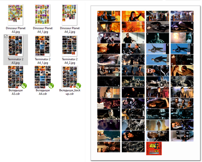 По терминатору, к сожалению, хорошего качества фотографии удалось найти не ко всем вкладышам. Попадается много похожих фото, но если попытаться сыграть в игру "найди n отличий", то можно увидеть, что для вкладышей использованы очень редкий фото. Это точно не кадры из фильма, а скорее всего какие-то фото со съемок или не вошедшие в фильм кадры.