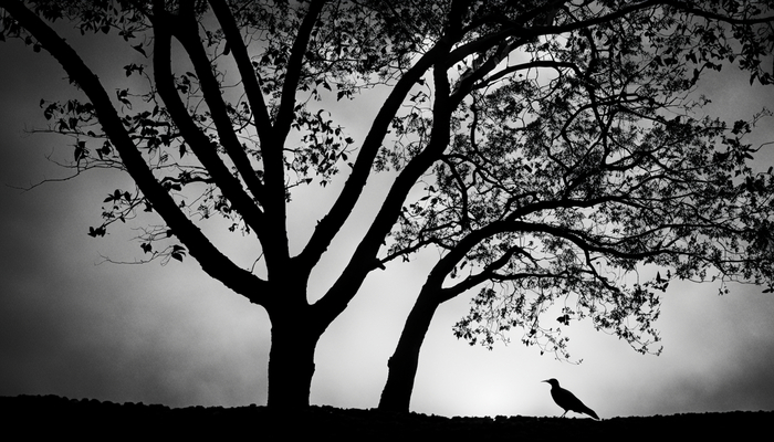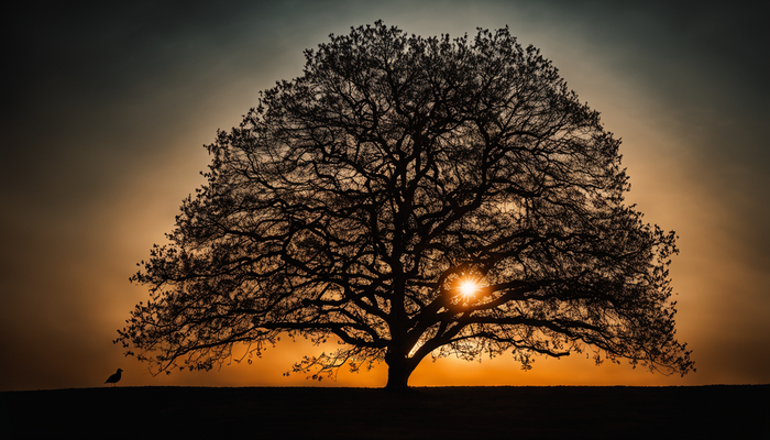Игра теней и контрастов, характерных для черного силуэта дерева, добавляет драматичности его образу. Жирные линии подчеркивают его формы и структуру, создавая неповторимый эффект.