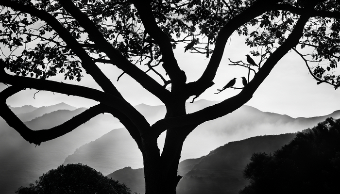 В современном искусстве силуэт птицы и дерева представляет собой важный элемент минимализма и эстетики. Черно-белые контуры, образующиеся при наличии света и тени, создают умиротворенную атмосферу. Такая форма изображения позволяет выделиться деликатными деталями и подчеркнуть красоту природы.