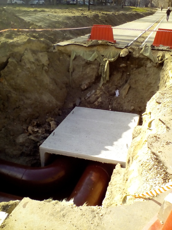 Тому кто придумал что лучшее место для дорожки над трубами обоссал бы лицо. Аллея широченная, сместите дорожку на два метра в сторону, а эти пусть копают там сколько угодно...