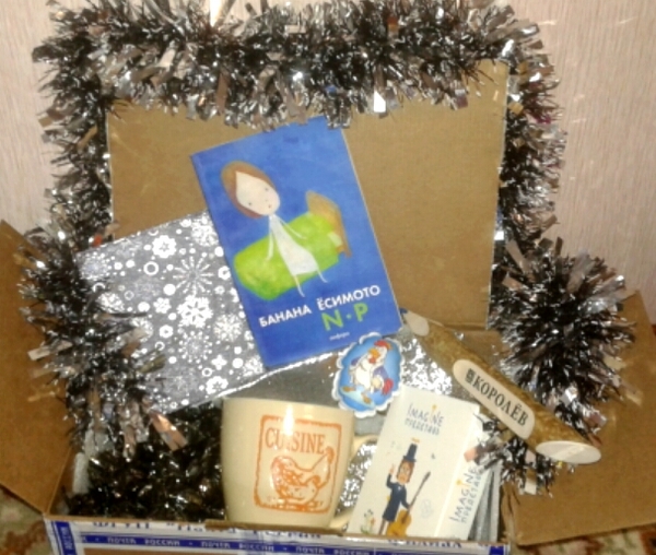Причем это не про посылку, а про меня. Наконец-то то добралась до написания поста. Подарочек мой пришел из Королёва еще 3 января, забрала я его только после рождества. Шли с почты вместе с мамой, ей была до того интересна эта затея с обменом подарков, что я доверила ей открыть коробку. Так как открывали и разбирали быстро и с азартом, фоткали уже после осмотра каждого элемента)))