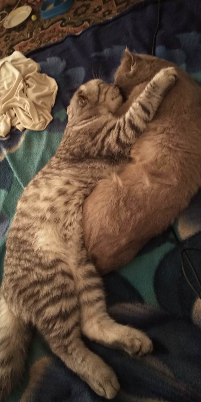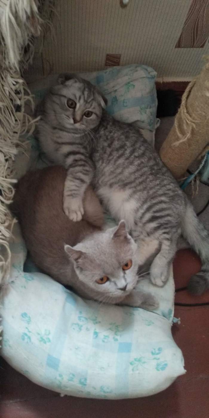 P.S.Фото наших котиков прикрепила. Серый полосатый котик - это Пончик - ее сын)
