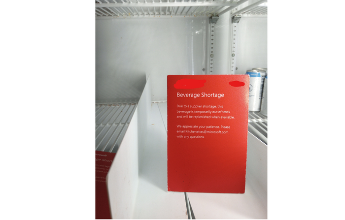 Как многие американцы, последнее время я сталкивался с пустыми полками. Не в магазинах: без понятия, пусты ли полки в магазинах, покупками занимается жена. Но на работе в холодильниках на несколько недель исчезли некоторые продукты, заменившись надписью "Нехватка напитков":