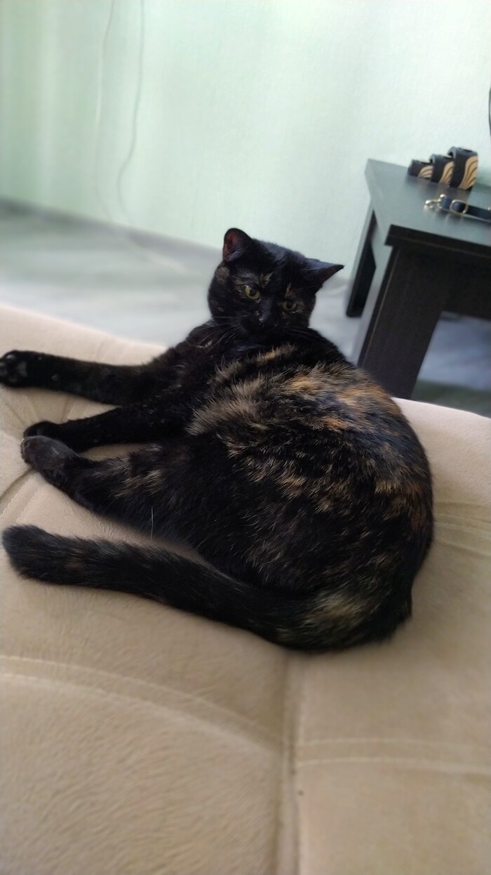 Очень красивая, глаза большие, круглые оранжевые, шерстка очень мягонькая, шелковистая. Окрас черепаховый.