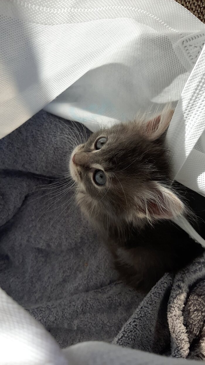 Сегодня нашли вот такое милое чудо сидящее под подъездом. Девочка, возраст примерно два месяца.
