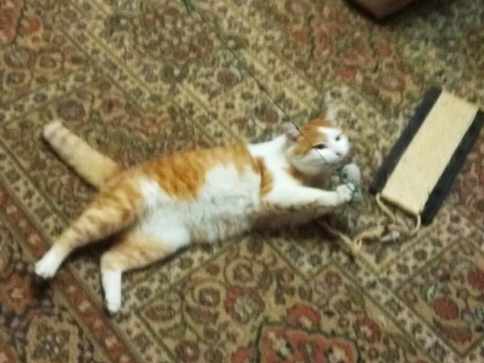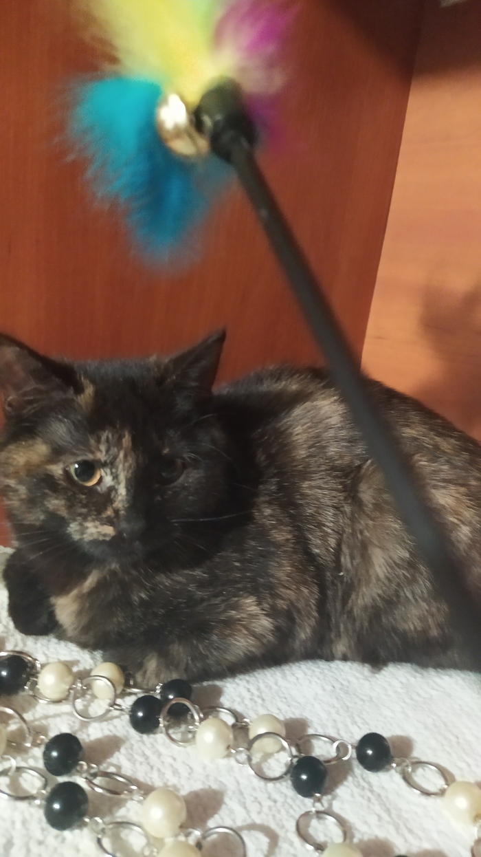 Игривая, с радостью носится с мячиками и бумажками, старается вовлечь в игру и человека, поиграть в догонялки.