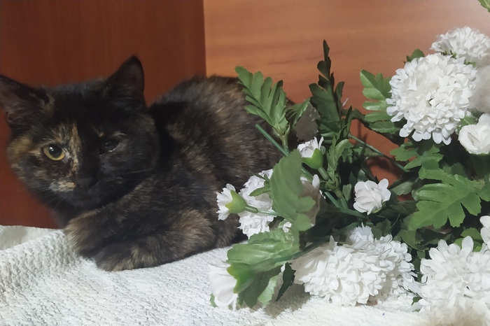 Лоток на отлично, к обоям и цветам равнодушна. Вылечена, обработана от паразитов, стерилизована.