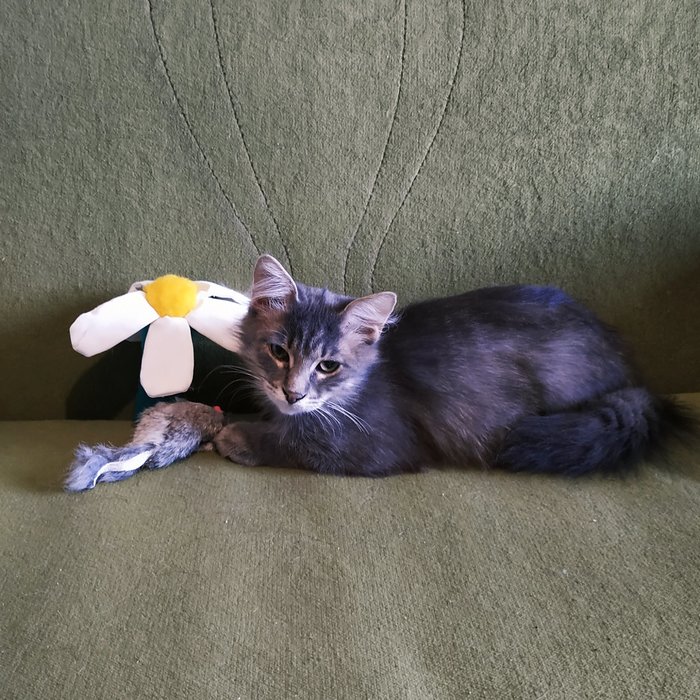 Это необычайно красивый пушистый дымчатый котенок (мальчик)