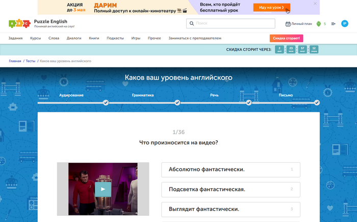 Длительность и количество уроков: 1 урок, 1 час 37 минут