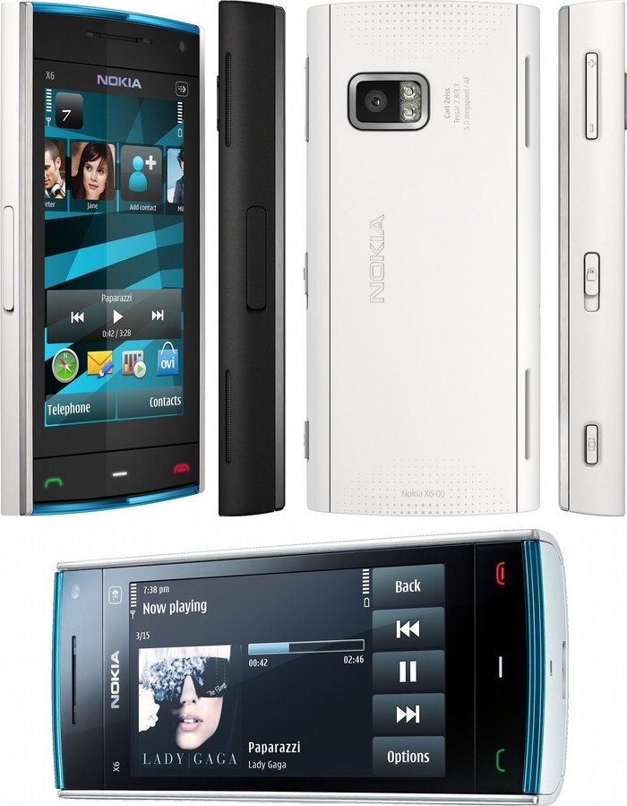 2009 год: X6 стал флагманским смартфоном Nokia для любителей музыки. Смартфон поддерживал доступ в социальные сети, а также карты Nokia Ovi. Модель была доступна в двух вариантах: с картой памяти 8 ГБ и 16 ГБ.