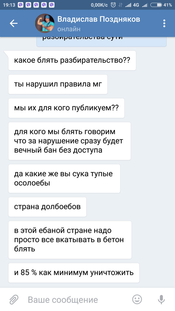 Я даже не успел написать что негоже с незнакомыми людьми так хамски общаться, как улетел в перманент.