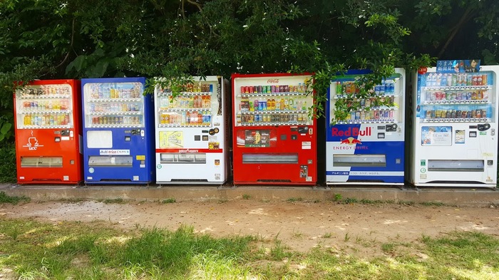 Автоматы с напитками, а иногда и с мороженым, снеками или сигаретами, стоят в Японии почти на каждом шагу.
