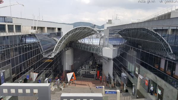 После дня в Наре, мы отправились в еще одну древнюю столицу Японии – Киото. Киото обычно начинается с вокзала, который одновременно является торговым центром и, вроде как, даже отель есть. Вокзал очень высокий – целых 15 этажей, а на самом верху расположена зона отдыха, откуда открывается отличный вид на весь город.