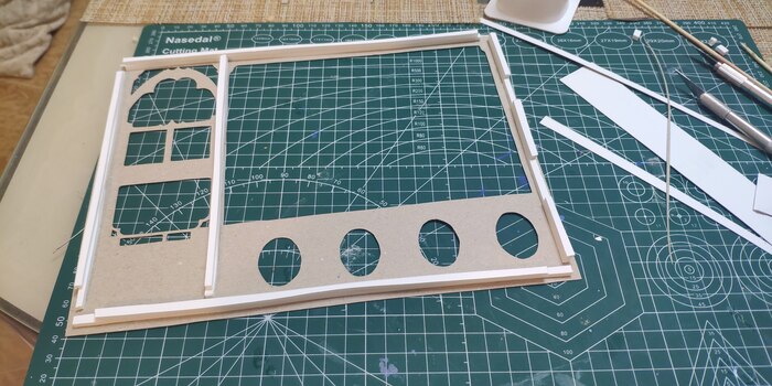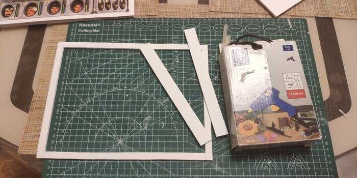 Как только все три слоя собраны, начинаем делать рамку. Сделать решил из того же пенокартона и термоклея (однако позже пожалел, что не взял черный пенокартон)