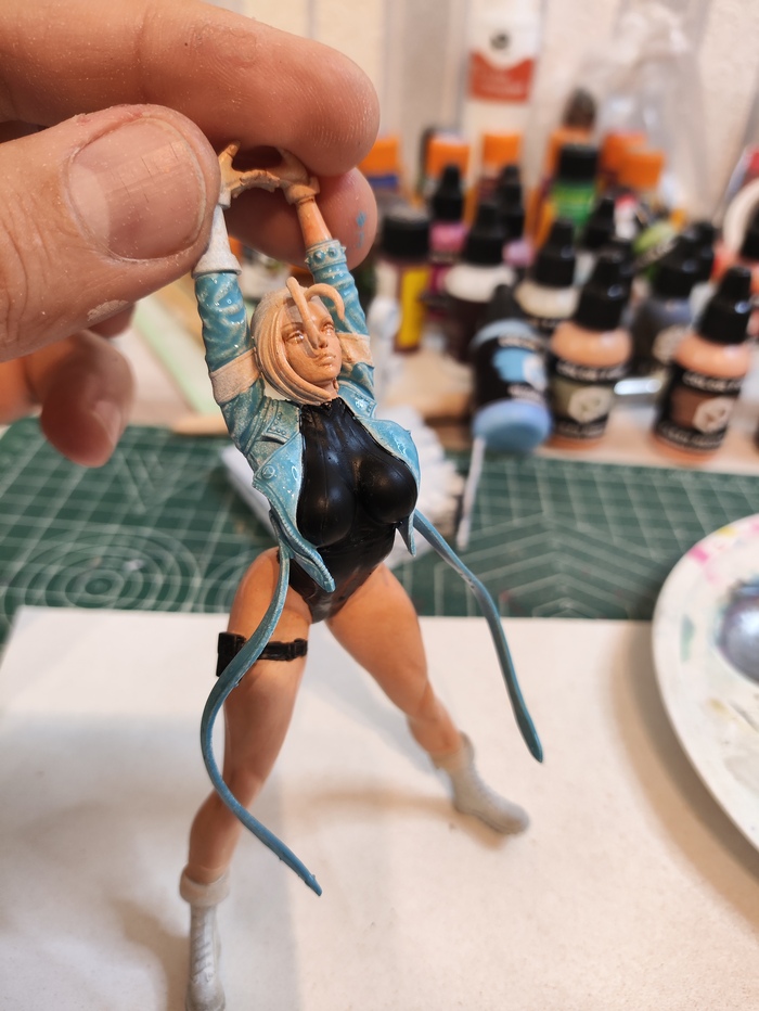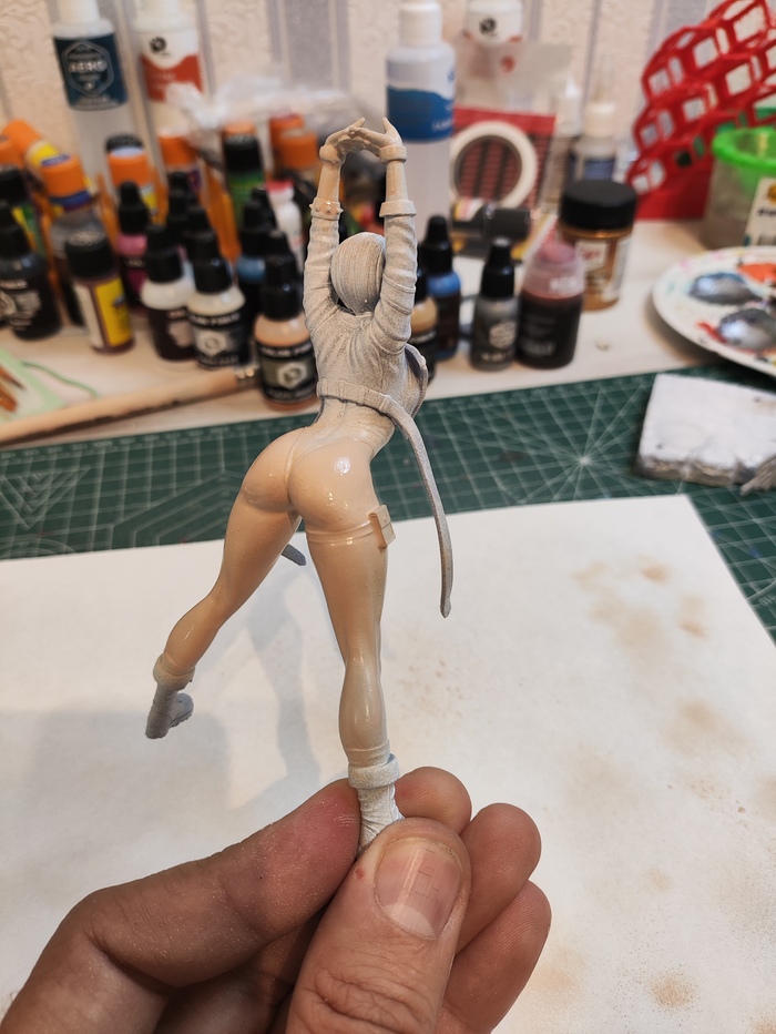 Приступаем к окрашиванию. Сперва при помощи аэрографа нанес базовый цвет кожи от которого буду отталкиваться. Крашу свободно так как одежду все равно перекрашивать: