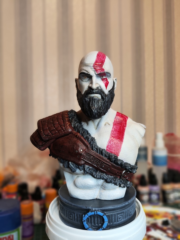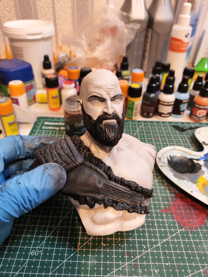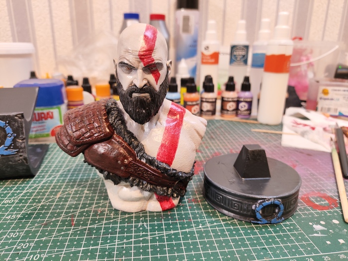 Видимо это уже стало традицией и вновь под новый год я дела что-то по игре God of War. В этот раз была не только подставка для джойстика но еще и бюст кратоса.