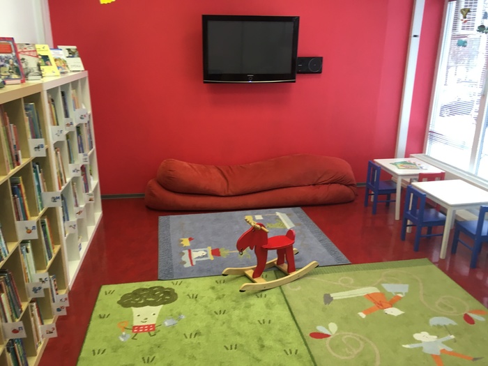 Комната с детской литературой, где можно посидеть с ребёнком, чтобы он мог поиграть и в то же время не мешать другим читателям. Дальше сайт мне не даёт прикреплять фото, поэтому продолжу в комментариях.