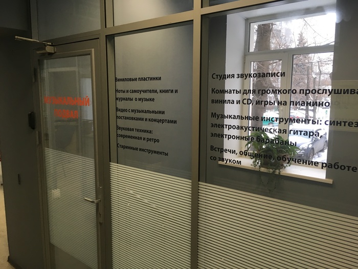 Зал, в который я влюбился ещё будучи читателем - музыкальный подвал. Здесь можно слушать музыку на диаках и виниле, взять музыкальную литературу, а ещё здесь есть 4 звукоизолированные комнаты: