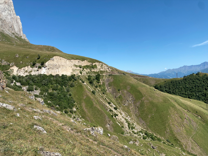 Через Осетию гораздо проще-выезжаем из Владикавказа в сторону границы с Грузией, после того, как проехали населённый пункт с названием Чми, поворачиваем налево, там как ориентир стоит небольшой КПП, на котором обычно никого не останавливают.
