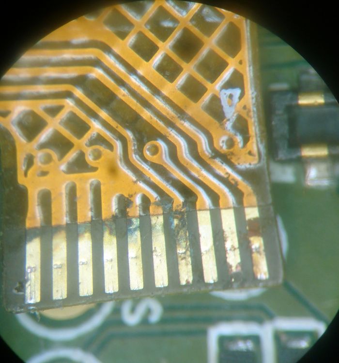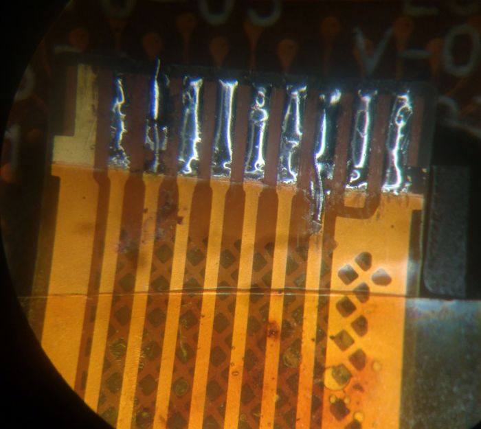 В разъеме подключения шлейфа дисплея, было много Ховен.