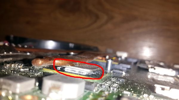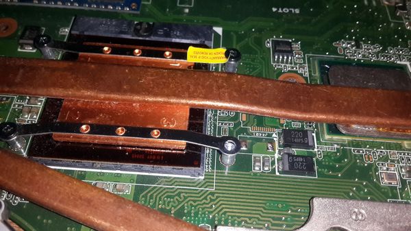 На Юге (южном мосту), теплопроводящая трубка не плотно прижата. На фотке конечно хреново видно, но там щель...