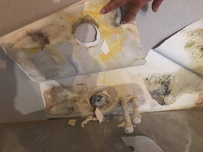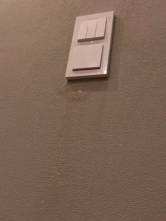 Тут в одно из прекрасных воскресений он приезжает в квартиру и видит свои новые отклеивающиеся обои в кухне, приподнимает обои, а тааааам: