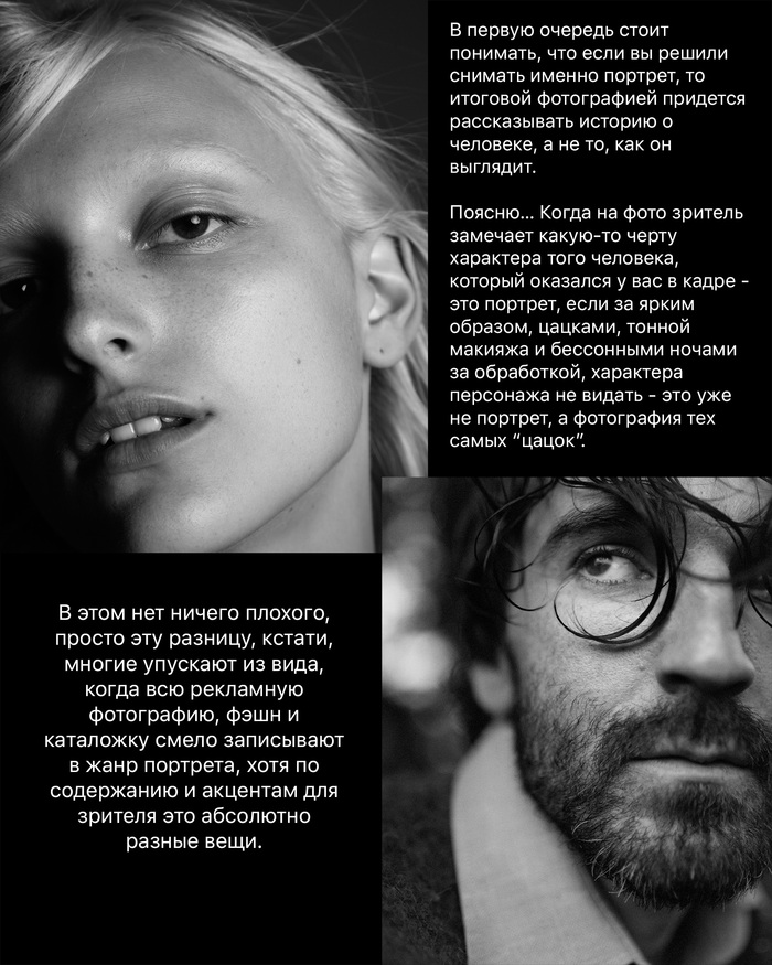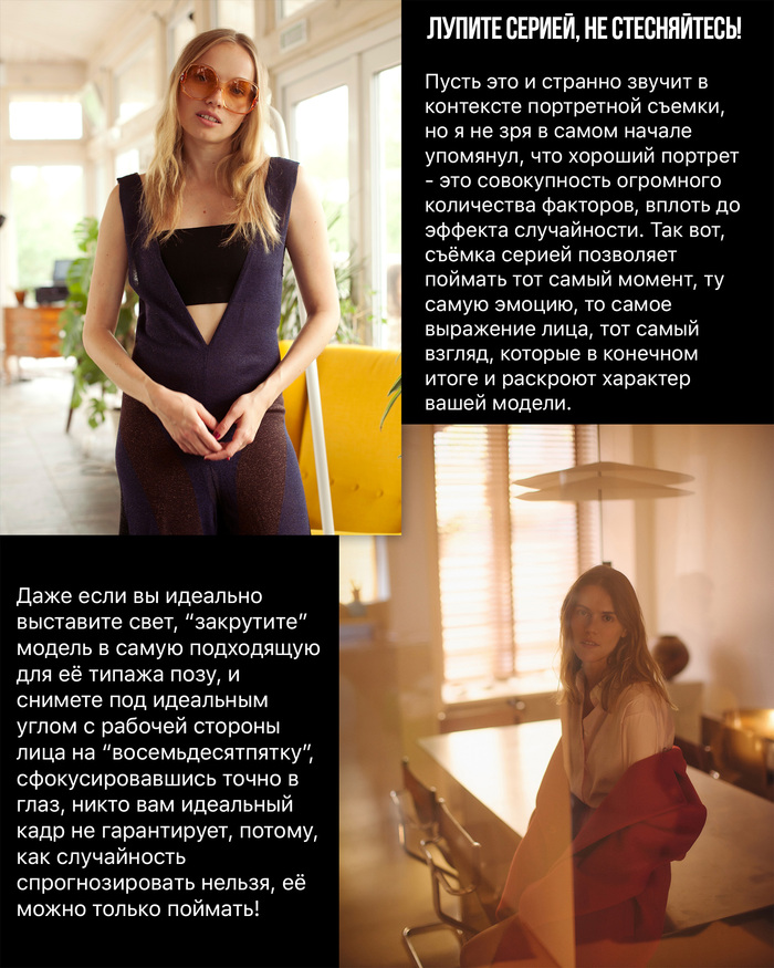 Хочу вставить свои “пять копеек” в обсуждение съемки моделей “...которых не бывает на мастер классах, в портфолио портретистов, на курсах, и в наших постах…”, как одного из правил “не делай так”, если хочешь получить на выходе хороший портрет.