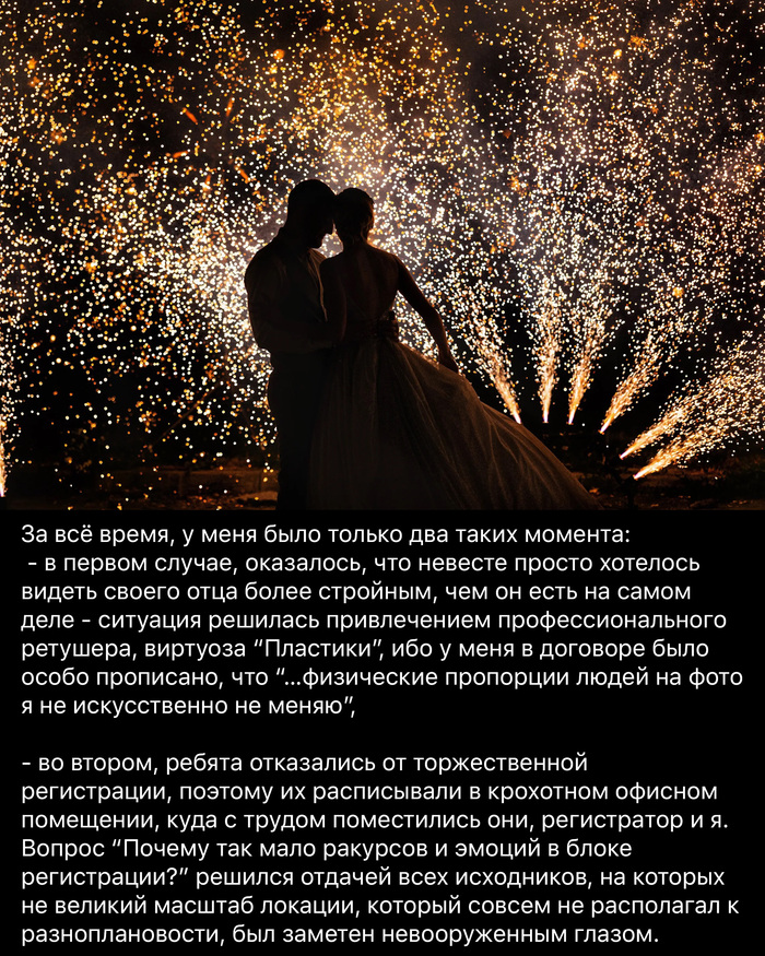 Как видите, ничего сложного. Опытные фотографы, наверняка, все эти приёмы, знают, а вот новичкам советую сохранить в шпаргалку, чтобы, когда у вас настанут “эти съёмки”, не ударить в грязь лицом и не лишиться заказа!