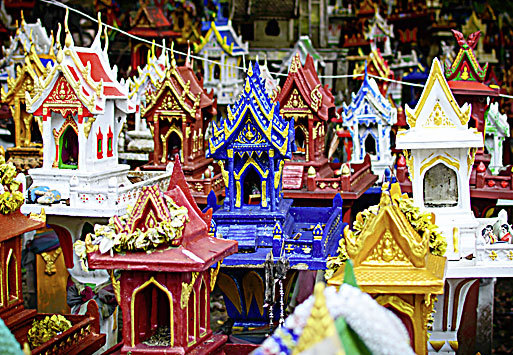 2. Санпхрапхум — маленькие домики для ду´хов. Их ставят возле жилищ, ежедневно духов «подкармливают» рисом. Часто можно увидеть в домиках конфеты, баночки кока-колы.