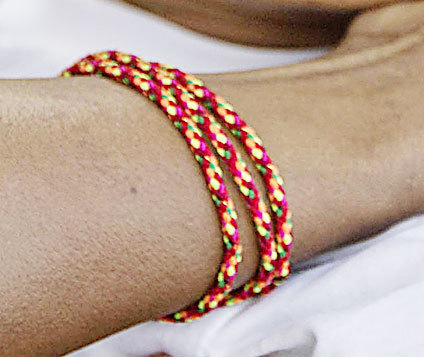 3. Сайсин — браслетик из цветных нитей, повязывается на запястья и лодыжки. Действие зависит от цвета.