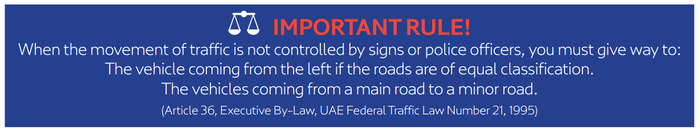 Я живу в славном городе-герое Дубае, и здесь же я получил свои первые и единственные водительские права. Картинка про круговое движение в официальной методичке местного ГИБДД выглядит вот так: