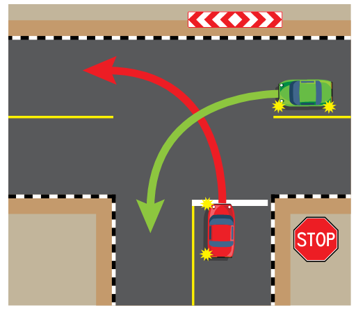 б) После поворота нужно оказаться на той же полосе, с которой ты съезжал.