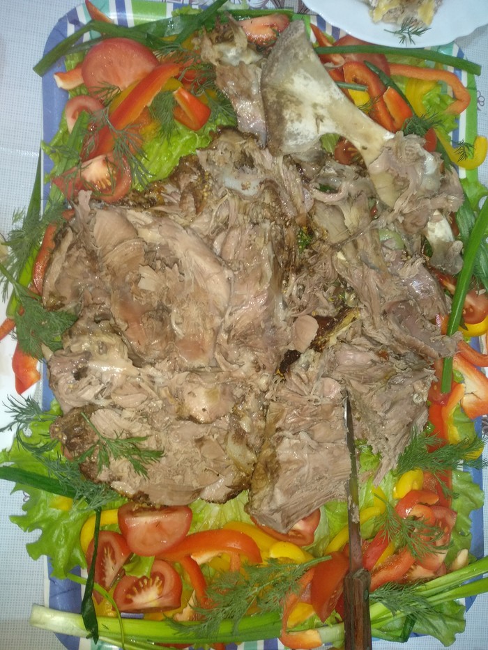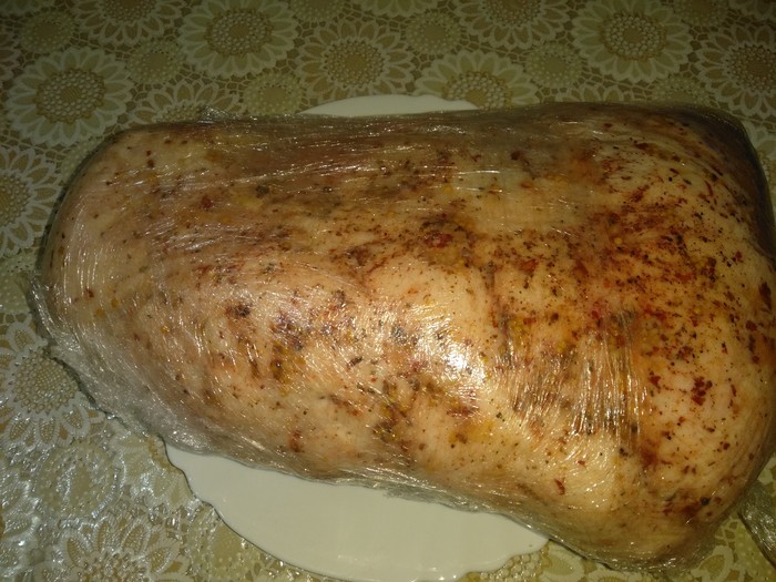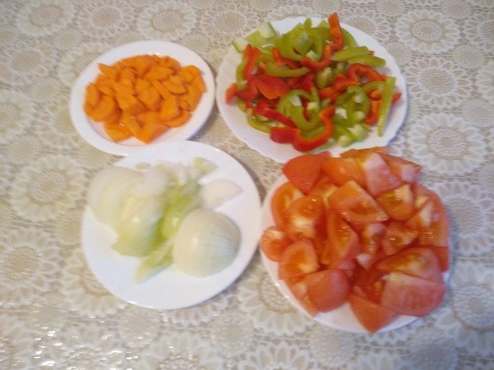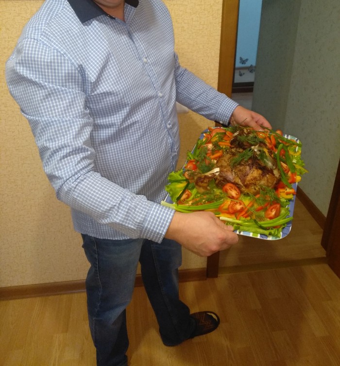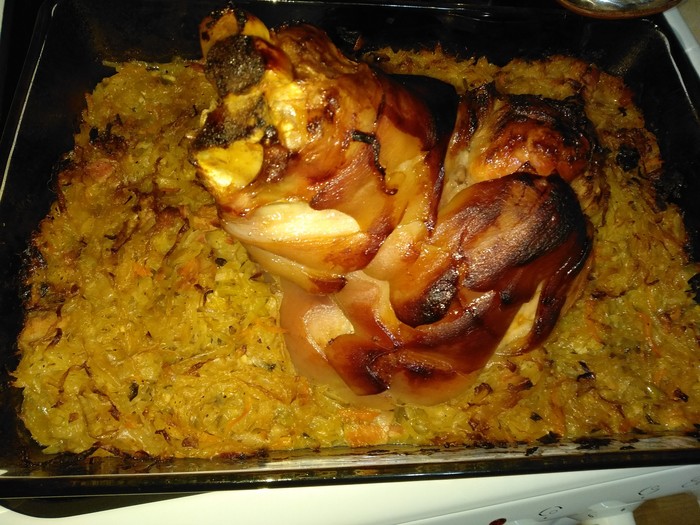 Духовку убавляем до 200'С, противень ставим в духовку на 20 минут, через 20 минут достаем и аккуратно разрезаем фольгу сверху.