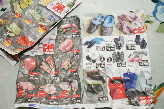 Для плотности коробка набита мятой бумагой. В мусор её? Как бы не так! Это же - каталог иностранного гипермаркета!
