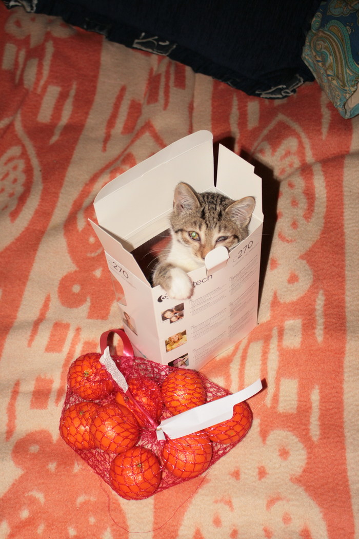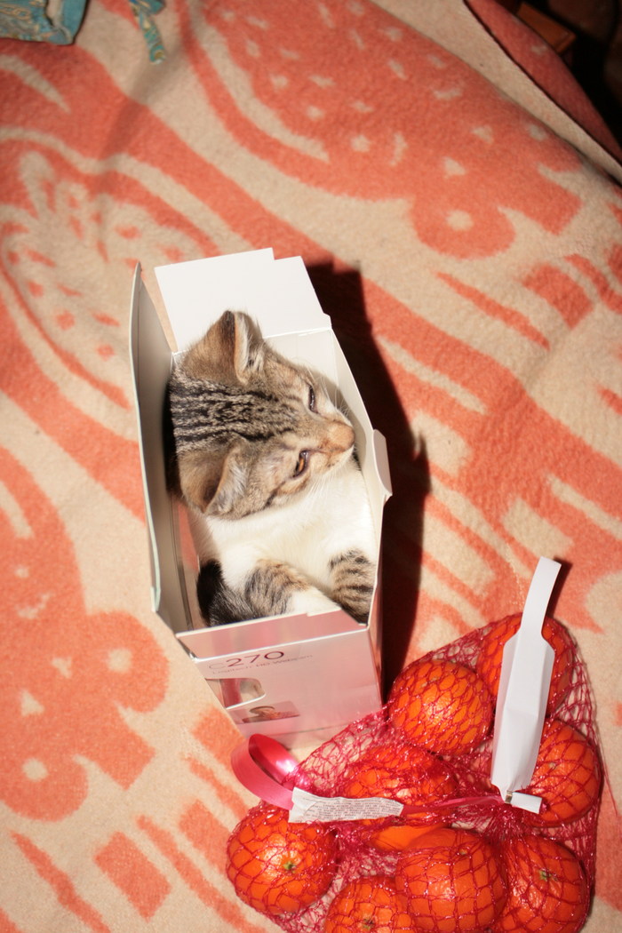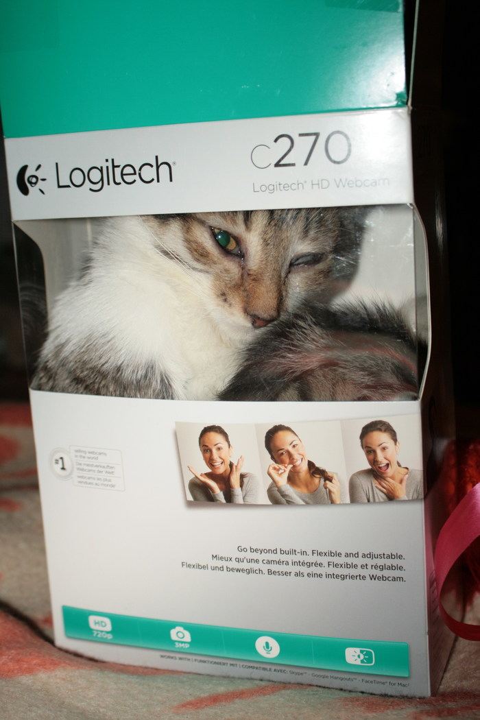 "Подарок" облюбовал коробку от веб-камеры, которую мне так же подарили на этот Новый Год, так что на фото - один "подарок" в коробке от другого =)