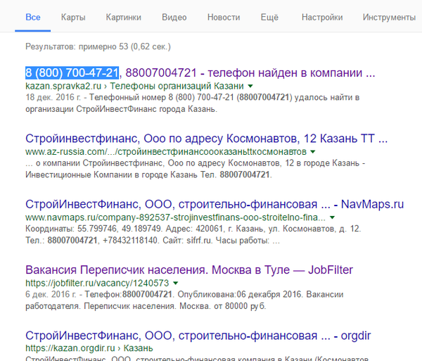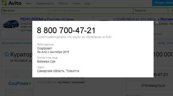 Есть у них в наличии номер: 8 (800) 700-47-21. Данный номер висит непосредственно во всех объявлениях по городам. Звонить конечно я сразу не побежал, а решил обратится к "Ok Google". ) И вот что думает на этот счет гугл.