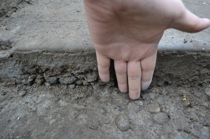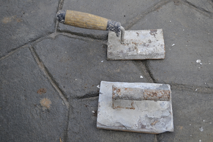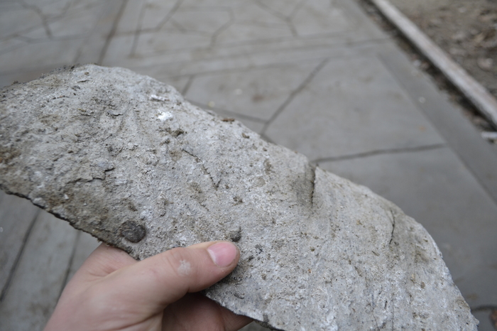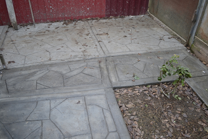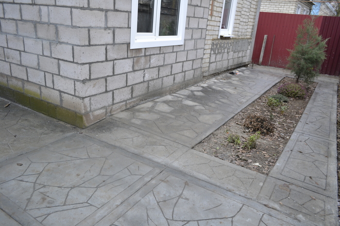 Само собой формы мне не по карману как и все эти разделители и красители. Выходил из ситуации при помощи старого разрезанного резинового мата(лежал когда то в коровнике) и камня типа сланец. С помощью этих средств пытался придать бетонной поверхности фактуру.