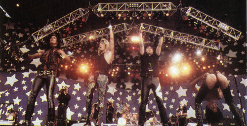 Далее, на сцене пионеры американского глэм-метал движения, хулиганы, раздолбаи «Motley Crue». Их встречают более оживленно, к тому моменту пластинки «Крю» ходовой товар на нашем черном рынке. Сорок минут отвязного рок-н-ролла пролетели как минута. Напоследок, басист Никки Сикс раздолбал свою «басуху» о монитор и запустил обломки в публику. Тем временем барабанщик Томми Ли «раскурочил» свою ударную установку, повернулся к стадиону задом, демонстративно оголив и показав средний палец. «Мотли Крю» полностью оправдали репутацию скандалистов.