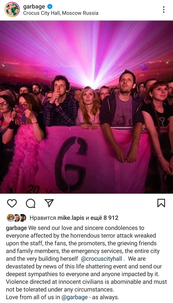 Занимаюсь организацией концертов, поэтому мне было интересно, кто из огромного количества иностранных артистов, выступавших в Крокусе, публично выразит соболезнования.