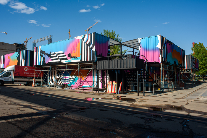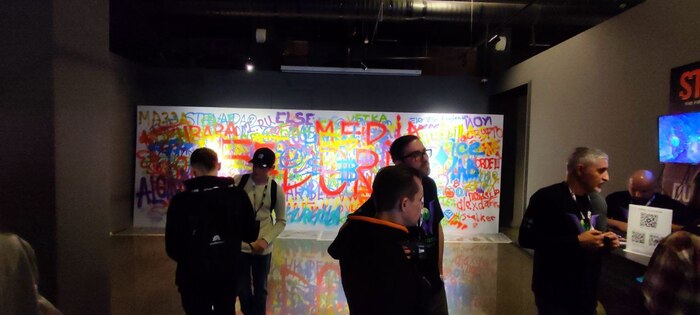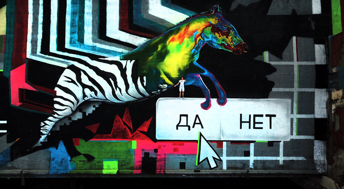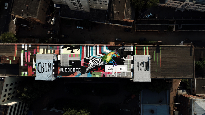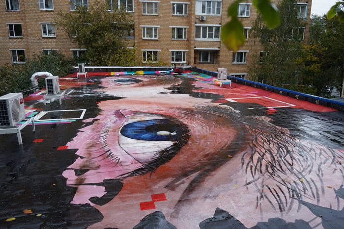 После теоретической части Antonio представил свои впечатляющие проекты. Одним из них стал масштабный стрит-арт в Москве – расписанная крыша площадью 300 м² под названием "Натюрморт нашей Действительности", которую, по словам автора, можно разглядеть даже из космоса.