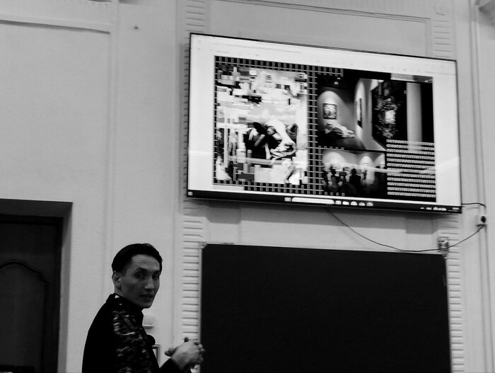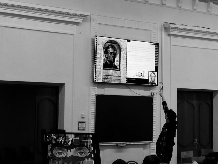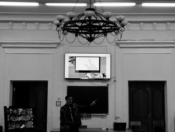 Зал был заполнен до отказа: студенты и преподаватели с нетерпением ждали яркого выступления известного мастера. Antonio оправдал ожидания, погрузив аудиторию в мир сюрреализма, арт-проектов, и собственного уникального стиля – глитчсюрреализма.