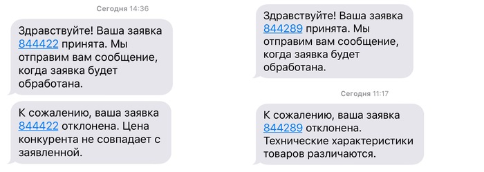Оформляем заявку, добавляем ссылку на товар и ждем смс с промокодом. Но вместо промокода приходит отказ: цена конкурента не соответствует заявленной. Странно, захожу проверять и вижу, что действительно другая цена: 133990. Оказалось, что евросеть периодически меняет цены (видимо, чтобы попасть в том по яндекс маркету), поэтому ночью цена ниже чем днем. На второй день выяснил, что цена меняется ровно в 9:00, молодцы, что сказать. Ну ладно, пусть 133990 — все равно 11000 выгоды. Снова оформляем заявку, ждем промокод. Но опять отказ: технические характеристики отличаются!