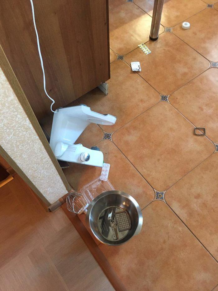 Двери холодильника она не смогла открыть, так как заботливо двери были приклеены скотчем))),