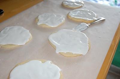Дайте печенью остыть и намажьте его сверху сахарной глазурью. Придайте глазури форму лужи от тающего снеговика.